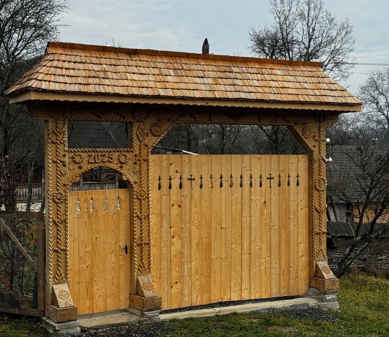 Realizăm porți maramureșene autentice și alte lucrări de dulgherie, îmbinând tradiția, rezistența și frumusețea lemnului lucrat cu pricepere. Fiecare proiect este făcut cu grijă pentru detalii, ca să dăinuie mai mult decât multe promisiuni moderne.